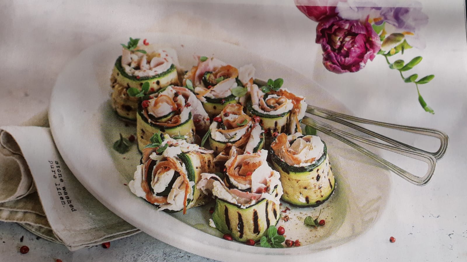 ROTOLINI DI ZUCCHINE CON CREMA DI PARMIGIANO E PORCHETTA TOSCANA